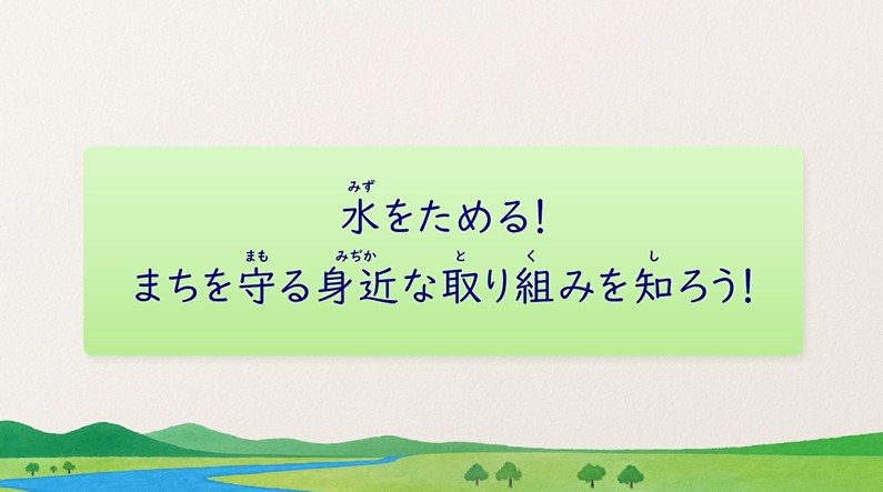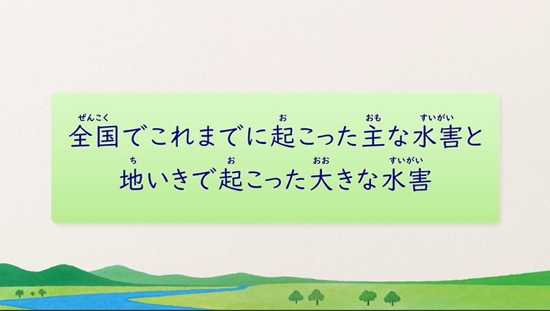 自分たちが水害の起こりやすい地域に暮らしているということを理解し、防災を自分事として捉える視点を育てます。